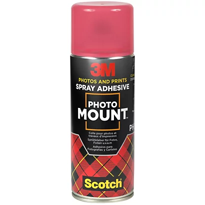 - Ampiamente utilizzato dai fotografi professionisti, PhotoMount™ è ottimo da utilizzare con carta fotografica e negativi, poiché non si assorbe e la sua formula a pH neutro non danneggia le fotografie. Applicata come adesivo trasparente e resistente all’ingiallimento, questa colla ad asciugatura rapida vanta numerosi impieghi specifici, tra cui l’affissione di raccolte fotografiche o l’esibizione delle migliori collezioni di stampe. PhotoMount™ offre una tenuta permanente e sicura per i tuoi progetti o le tue esposizioni. Disponibile in un pratico flacone con spray nebulizzante, PhotoMount™ si può applicare su quasi tutte le superfici cartacee porose e non porose. Adesivo permanente e sicuro una volta asciutto, consente di riposizionare gli oggetti dopo l’applicazione, che non si increspano né si macchiano nel tempo. Al contrario della colla liquida in bottiglia, il formato spray può essere applicato uniformemente e non è difficile pulirlo dopo l’uso. È sufficiente applicare la colla, posizionare in maniera ordinata e poi attendere che si asciughi.