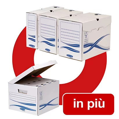- Acquistando 25 contenitori Bankers Box Basic, 5 scatole con coperchio ribaltabile Bankers Box Basic sono comprese nel prezzo.