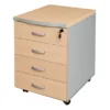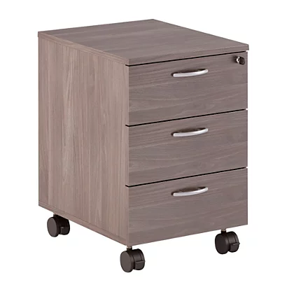 - Questa cassettiera, realizzata in bilaminato nobilitato melaminico, conforme alle norme UNI e EN classe E1, è dotata di 3 cassetti scorrevoli su guide metalliche con fermo a fine corsa; il primo cassetto è dotato di serratura per la garanzia della massima sicurezza del contenuto. Top con bordo anteriore in ABS e maniglie in materiale antiurto color grigio alluminio. Dotata di pratiche ruote pivotanti, è fornita smontata.