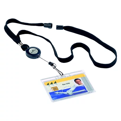 - Il cordoncino DURABLE con chiocciola per badge è ideale per i documenti di identità e i badge che devono essere mostrati e scansionati con frequenza.