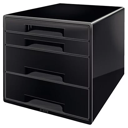 - L’elegante cassettiera Leitz è realizzata in robusto polistirene atossico con elegante finitura glossy e design bicolore. É dotata di due cassetti grandi e due piccoli per un utilizzo flessibile. Cassetti a scorrimento facilitato con fermo a fine corsa per prevenirne la fuoriuscita; inoltre grazie all’esclusivo sistema “stay-shut”, premendo il cassetto rimane chiuso. Ogni cassettiera è dotata di una vaschetta organizer in plastica trasparente adattabile sia ai cassetti grandi che a quelli piccoli, ideale per ordinare i piccoli oggetti di cancelleria. Piedini antiscivolo per non rovinare le superfici delicate, è impilabile fino a 3 unità per ottimizzare lo spazio.