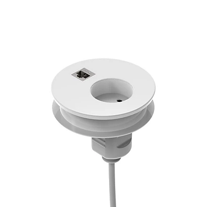 - Il passaspina per fori da 8 cm di diametro, viene inserito ad incastro sul piano di lavoro preforato e permette di mantenere in ordine tutti i cavi dei tuoi dispositivi elettrici. Facile da installare, è dotato di presa shuko e pratico connettore di rete.