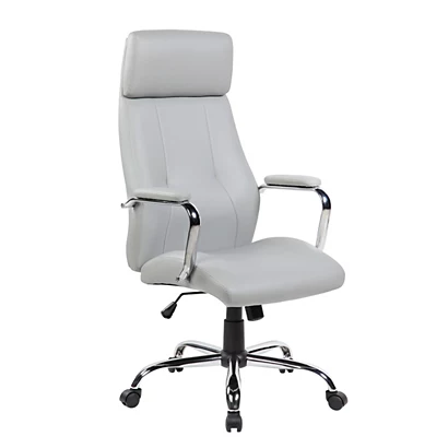 - Dotata di rivestimento esterno in pelle sintetica PU; la pelle sintetica PU riproduce l’aspetto, la sensazione tattile e i vantaggi della vera pelle, in più garantisce resistenza ed elasticità, impermeabilità e una corretta traspirabilità. Questa poltrona per ufficio assicura il massimo comfort durante le ore di lavoro grazie al meccanismo oscillante con blocco in posizione di lettura ed alla regolazione dell’intensità di spinta; il sedile è regolabile in altezza mediante alzata a gas, con escursione di 10 cm. La base a 5 razze è realizzata in acciaio cromato con ruote pivotanti.