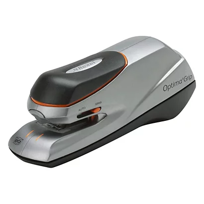 - La cucitrice elettrica Rexel Optima® Grip vanta un design compatto e può essere controllata intuitivamente dall’utente per risultati accurati.